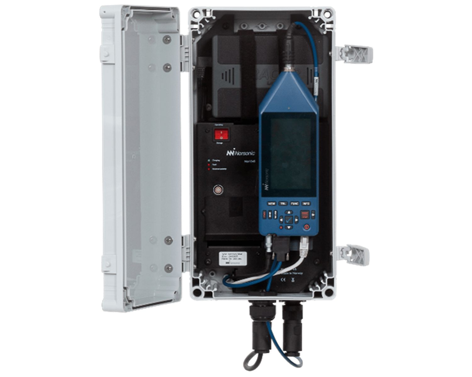 The Noise monitoring station measures decibel levels in real time, logging the precise level ten times per second. This log can include for example: LAeq, LAmax, LAmin, LA10, LA50, LA90, LA95, 1/3 octaves, wind direction, wind velocity, temperature, rainfall. Also, event based audio and images can also be captured.